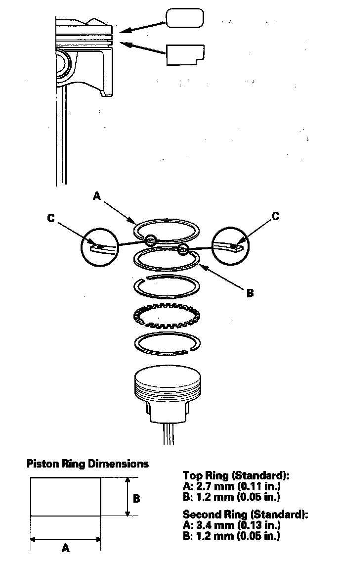 Piston RingsTop & 2nd ring grooves 1.2 mm (0.05 in.) wide.