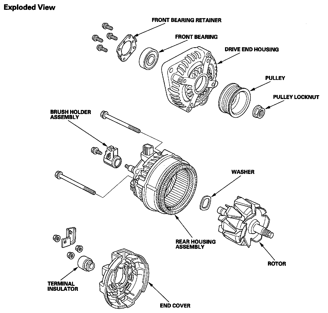 22. After assembling the alternator, turn the pulley by hand to make sure the rotor turns smoothly and without noise.