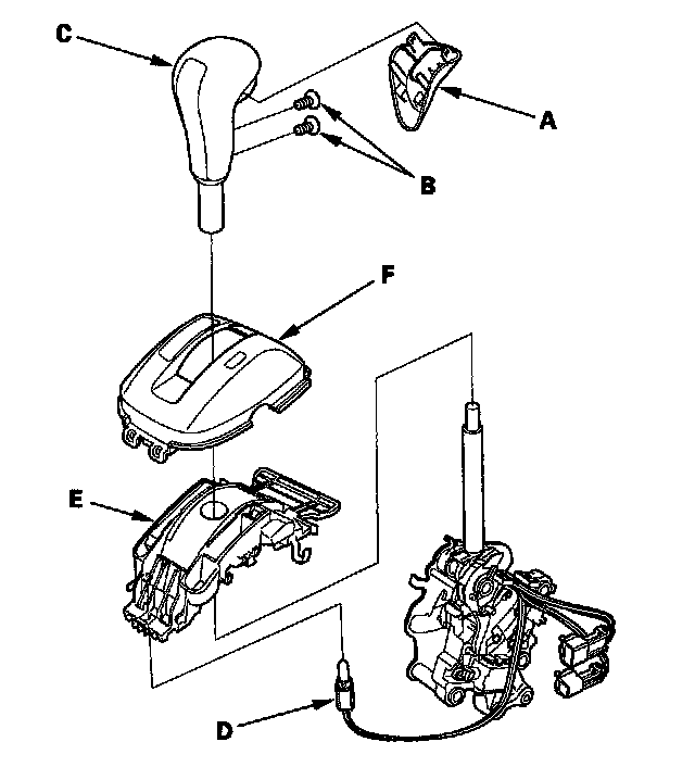 9. Remove the park pin switch/A/T gear position indicator panel light harness (D).