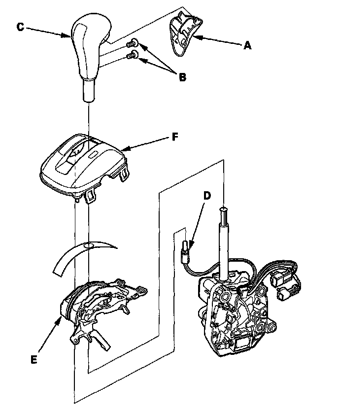 6. Remove the A/T gear position indicator panel (F), and disassemble the indicator panel and the panel base.