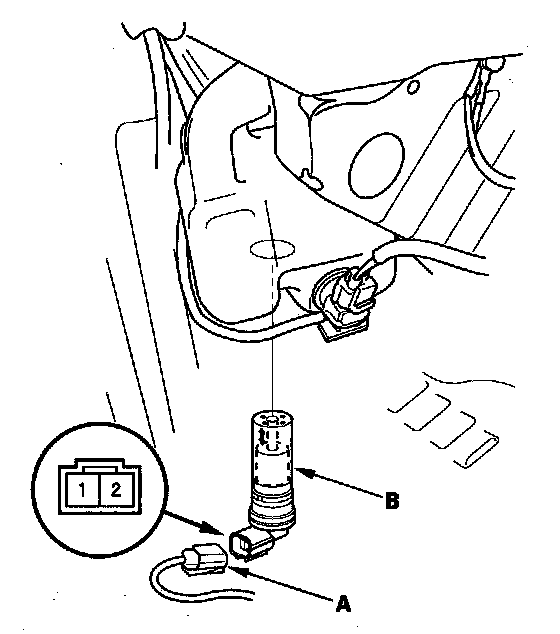 2. Disconnect the 2P connector (A) from the washer fluid level switch (B).