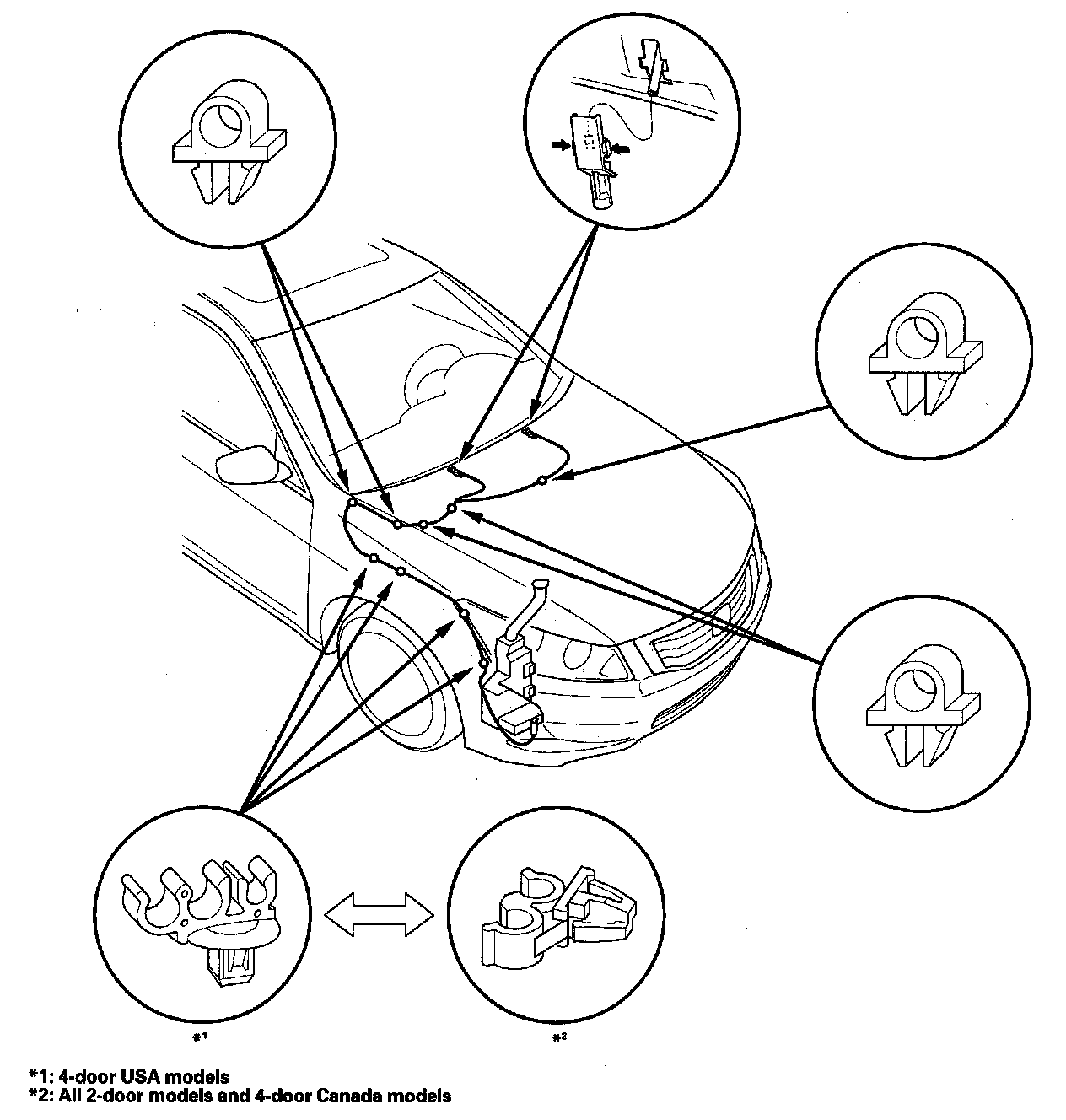 2. Remove the washer nozzles and clips, then remove the tubes.