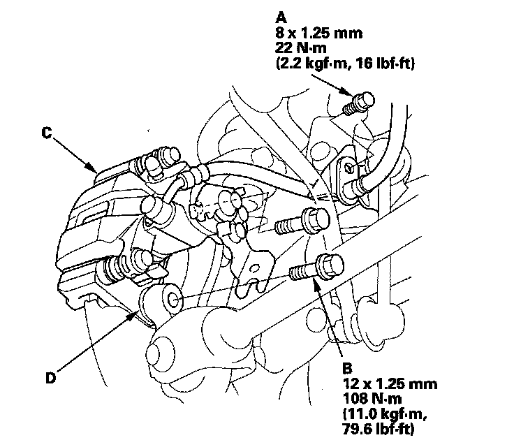 NOTE: If the brake disc is stuck to the hub bearing unit, thread two 8 x 1.25 mm bolts (C) into the brake disc to push it away from the hub bearing unit. Turn each bolt 90 degrees at a time to prevent the brake disc from binding.