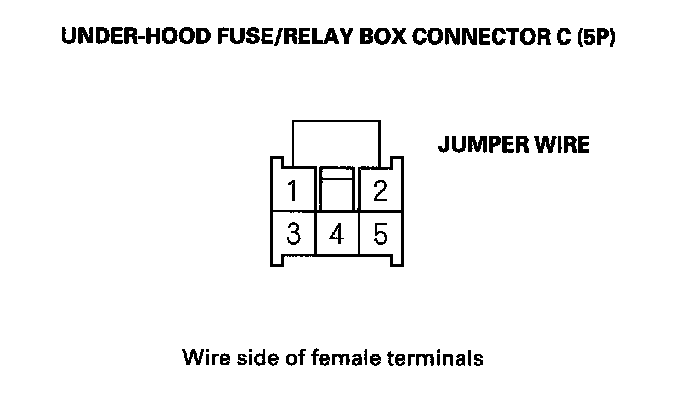 4. Connect under-hood fuse/relay box connector terminals C1 and B2 with a jumper wire.
