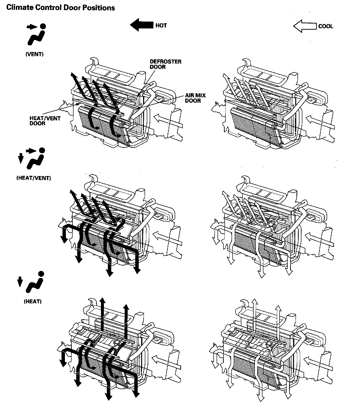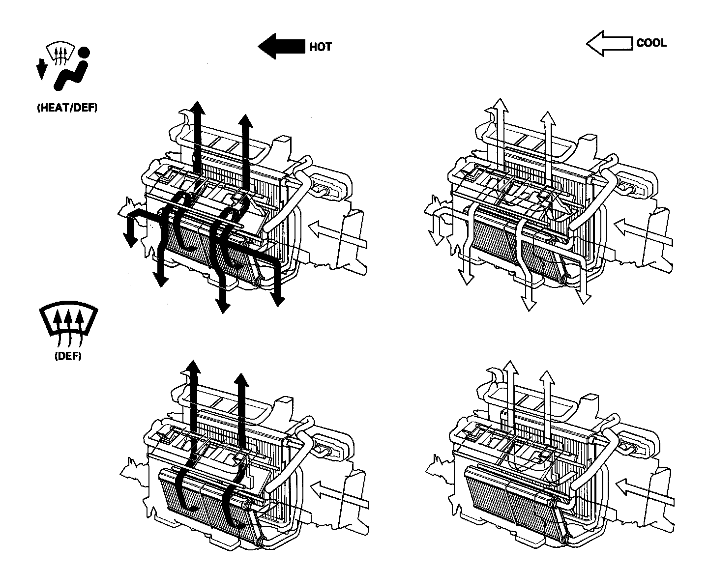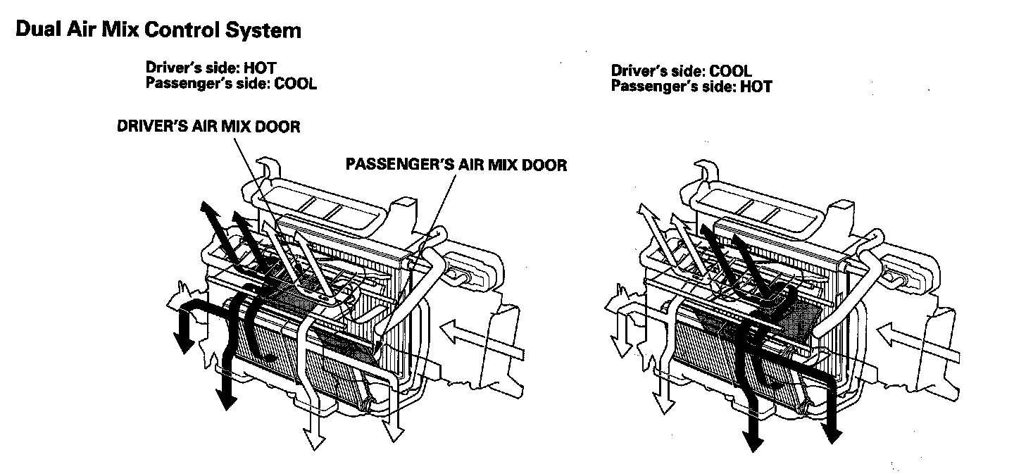 This system automatically controls the temperature and the vent mode of the air direction to the driver and passenger's side depending on the angle of the sun and the direction of the vehicle. It calculates information such as date, time, longitude, and latitude from the navigation system, as well as the irradiate strength of the sun from the sunlight sensor, to determine the appropriate mode position and temperature to be directed to each side.