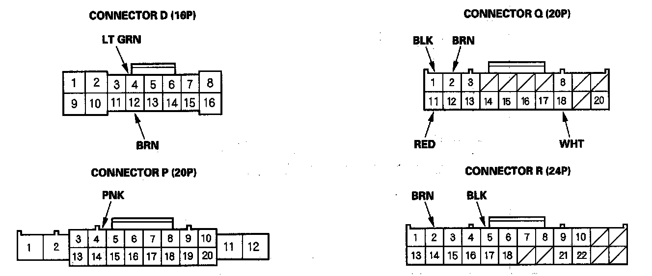 2. Disconnect driver's under-dash fuse/relay box connectors D, P, Q, and R.