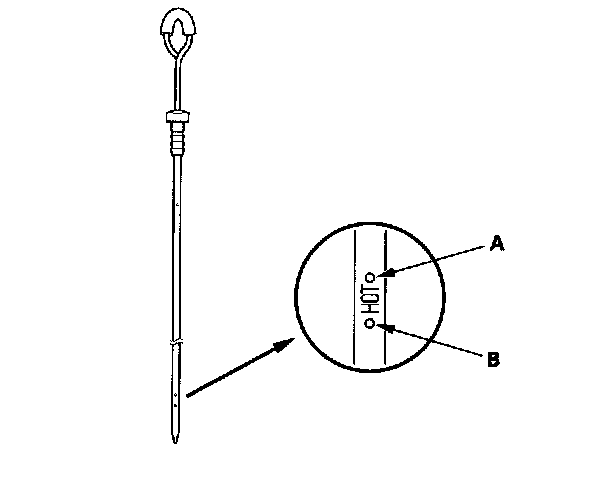 5. Remove the dipstick and check the fluid level. It should be between the upper mark (A) and lower mark (B).