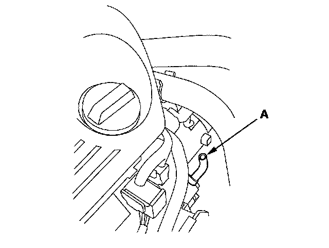 8. If necessary, fill the transmission with the ATF through the dipstick guide tube opening (A) to bring the fluid level midway between the upper mark and lower mark of the dipstick. Do not fill past the upper mark. Always use Honda ATF DW-1 (ATF-Z1 has been replaced with ATF DW-1, Honda Service News Nov 2010) Automatic Transmission Fluid (ATF). Using a non-Honda ATF can affect shift quality.