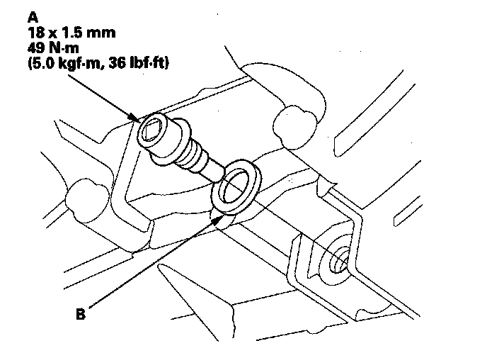6. Refill the transmission with the recommended fluid through the filler hole (A). Always use Honda ATF DW-1 (ATF-Z1 has been replaced with ATF DW-1, Honda Service News Nov 2010) Automatic Transmission Fluid (ATF). Using a non-Honda ATF can affect shift quality.