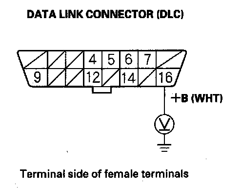 24. Measure the voltage between DLC terminal No. 16 and body ground.