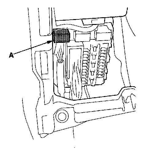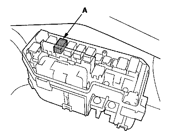 49. Remove PGM-FI main relay 2 (FUEL PUMP) (A) from the driver's under-dash fuse/relay box.