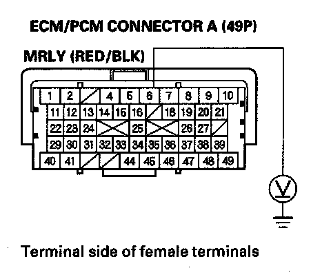33. Check for continuity between ECM/PCM connector terminal A49 and body ground.