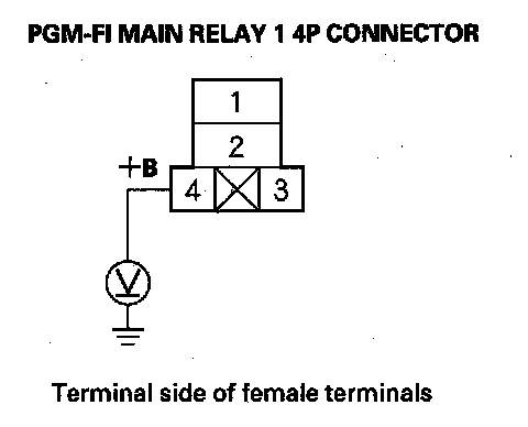 63. Measure the voltage between PGM-FI main relay 1 4P connector terminal No. 4 and body ground.
