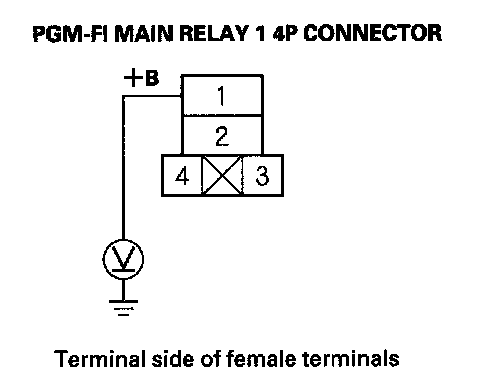 67. Measure the voltage between PGM-FI main relay 1 4P connector terminal No. 1 and body ground.