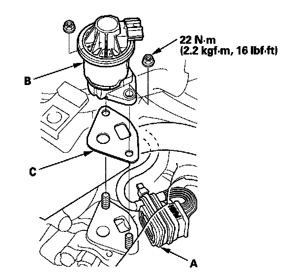 Install the parts in the reverse order of removal with a new gasket (C).