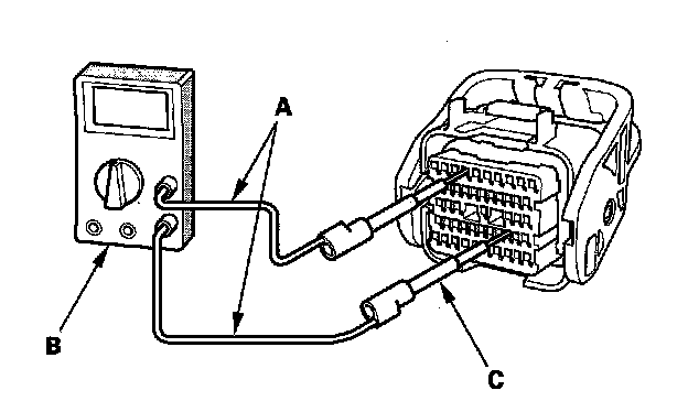 NOTE: ECM/PCM connectors A, B, and C have symbols (A=Square, B=Triangle, C=Circle) embossed on them for identification.