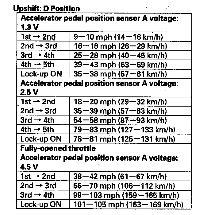 7. Monitor the HDS, and accelerate quickly until the APP Sensor A reads 1.3 V. Maintain a steady throttle until the transmission shifts to 5th gear, then slow the vehicle and come to a stop.