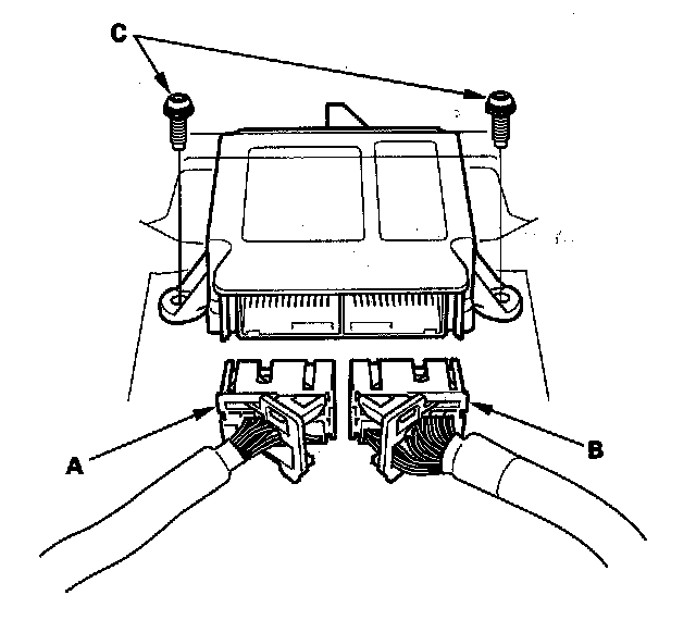 6. Disconnect SRS unit connector A (39P) and SRS unit connector B (39P), and remove the TORX bolts (C) using a TORX T30 bit, then pull out the SRS unit.