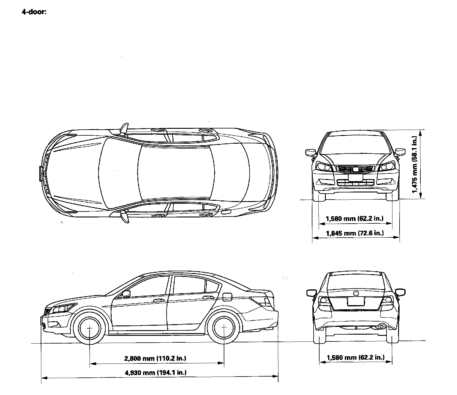 Body Specifications 4-Door V6-3.5L: