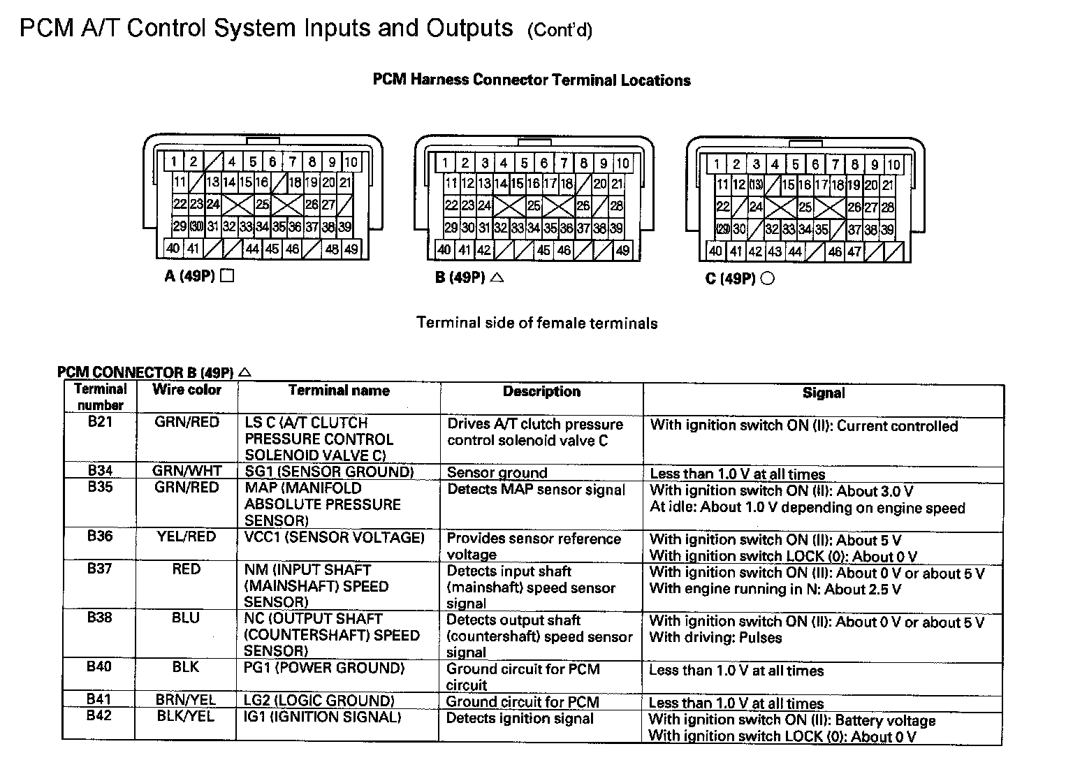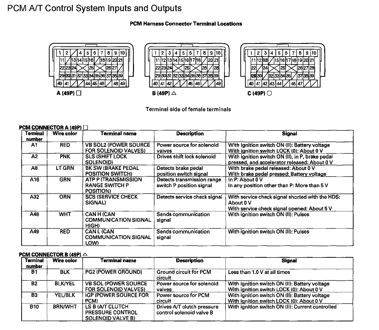 PCM A/T Control System Inputs and Outputs (Part 1):