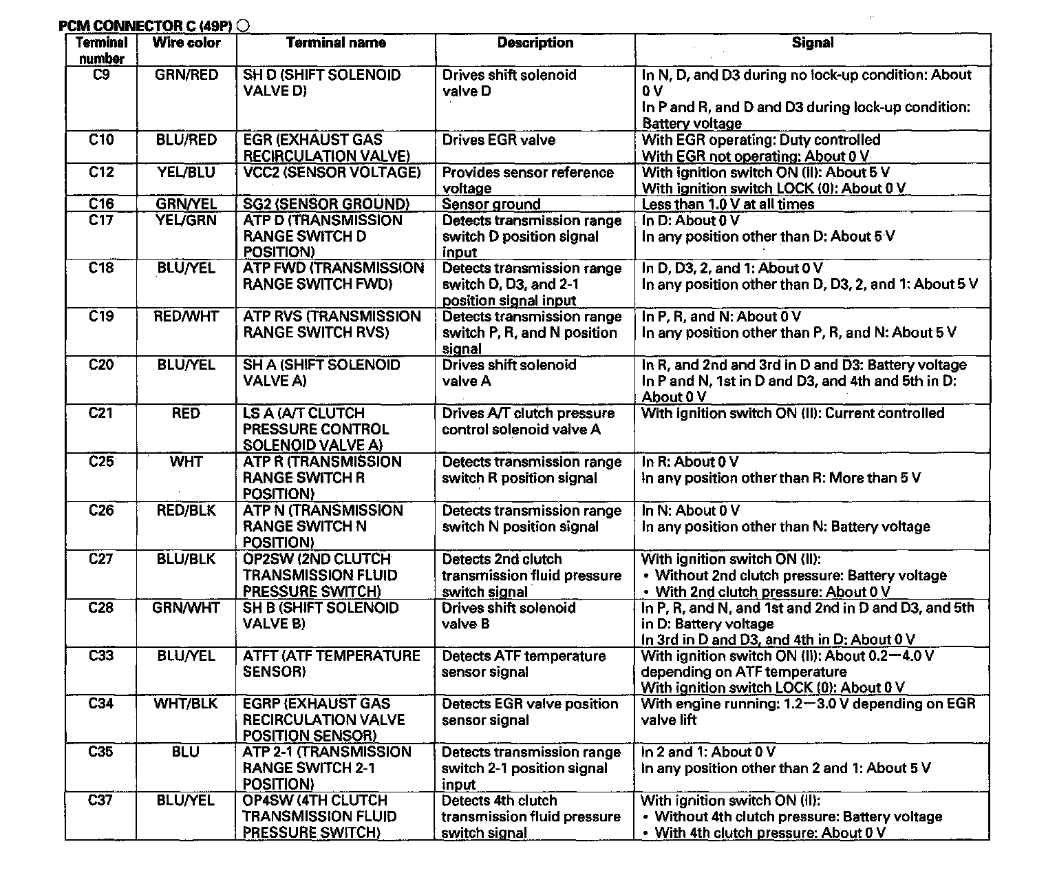 PCM A/T Control System Inputs and Outputs (Part 4):