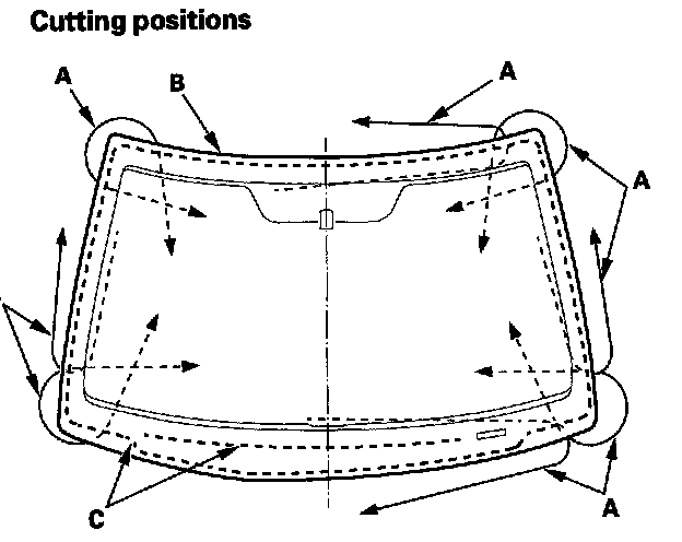- When replacing a broken windshield, a commercially available windshield cutter can be efficiently used for cutting the adhesive. For details, follow the instructions of the tool manufacturer.