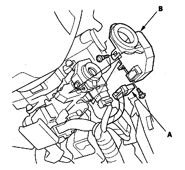 3. Disconnect the 7P connector (A) from the immobilizer-keyless control unit (B).