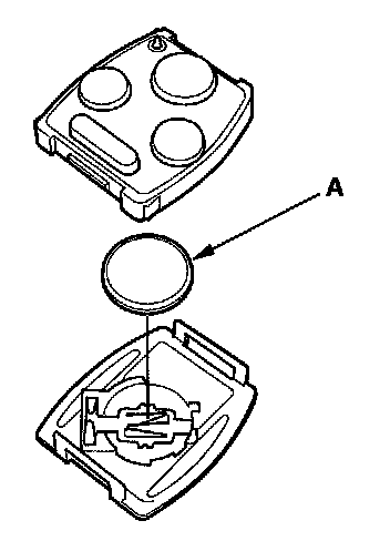 4. Replace the transmitter battery (A) with a new one, and try to lock and unlock the doors with the transmitter by pressing the lock or unlock button five or six times.