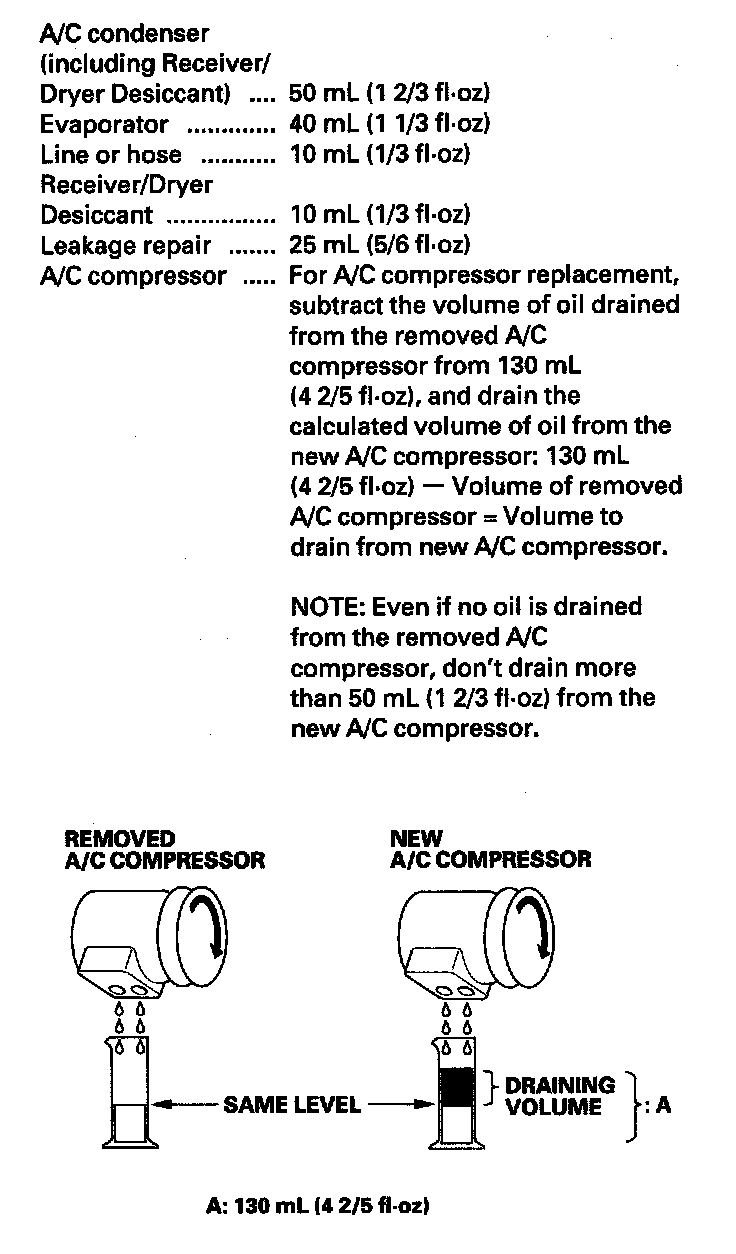 A/C Refrigerant Oil ReplacementWARNING: Using the wrong refrigerant oil increases the chance of electric shock or death.