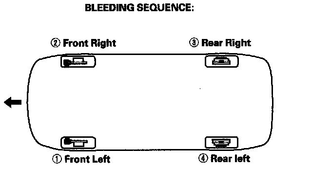 NOTE: Bleed the calipers or the wheel cylinders in the sequence shown.
