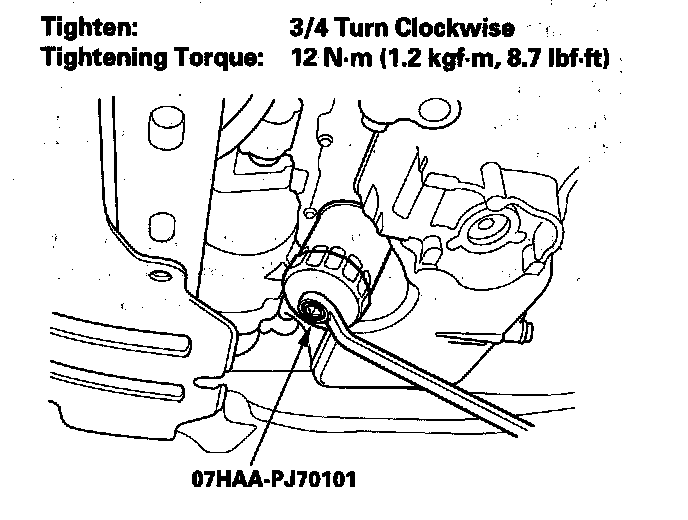 8. After installation, fill the engine with oil up to the specified level. Check for oil leakage during and after running the engine for more than 3 minutes.
