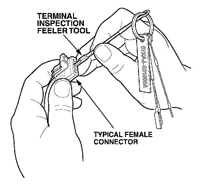 Loose terminal fit can cause a number of intermittent problems in electrical circuits. By using the Terminal Inspection Feeler Tool Set you can inspect the terminal fit between the two matching connectors without removing the terminals from the connector body.