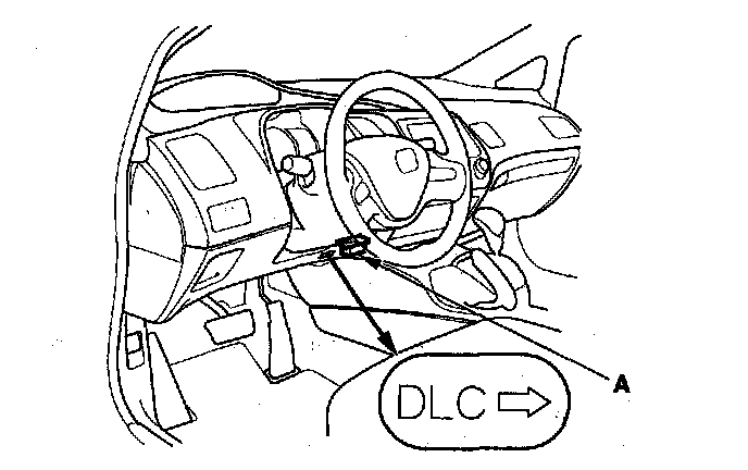 5. Connect the HDS to the DLC (A) located behind the driver's dashboard lower cover, and go to the A/T Mode Menu.