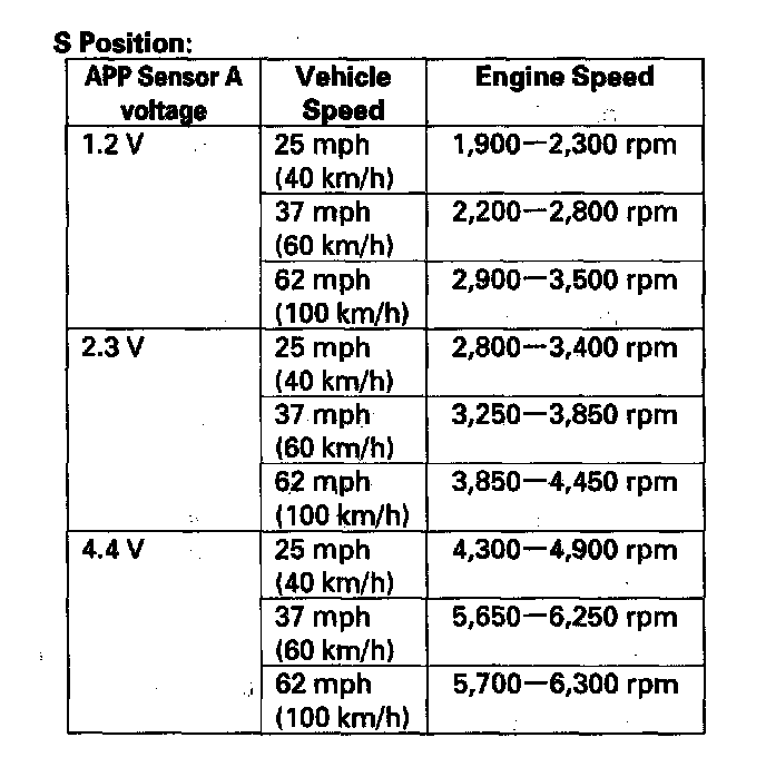 15. Review each snapshot individually, and compare APP Sensor A Voltage, Vehicle Speed, and Engine Speed to the following table.