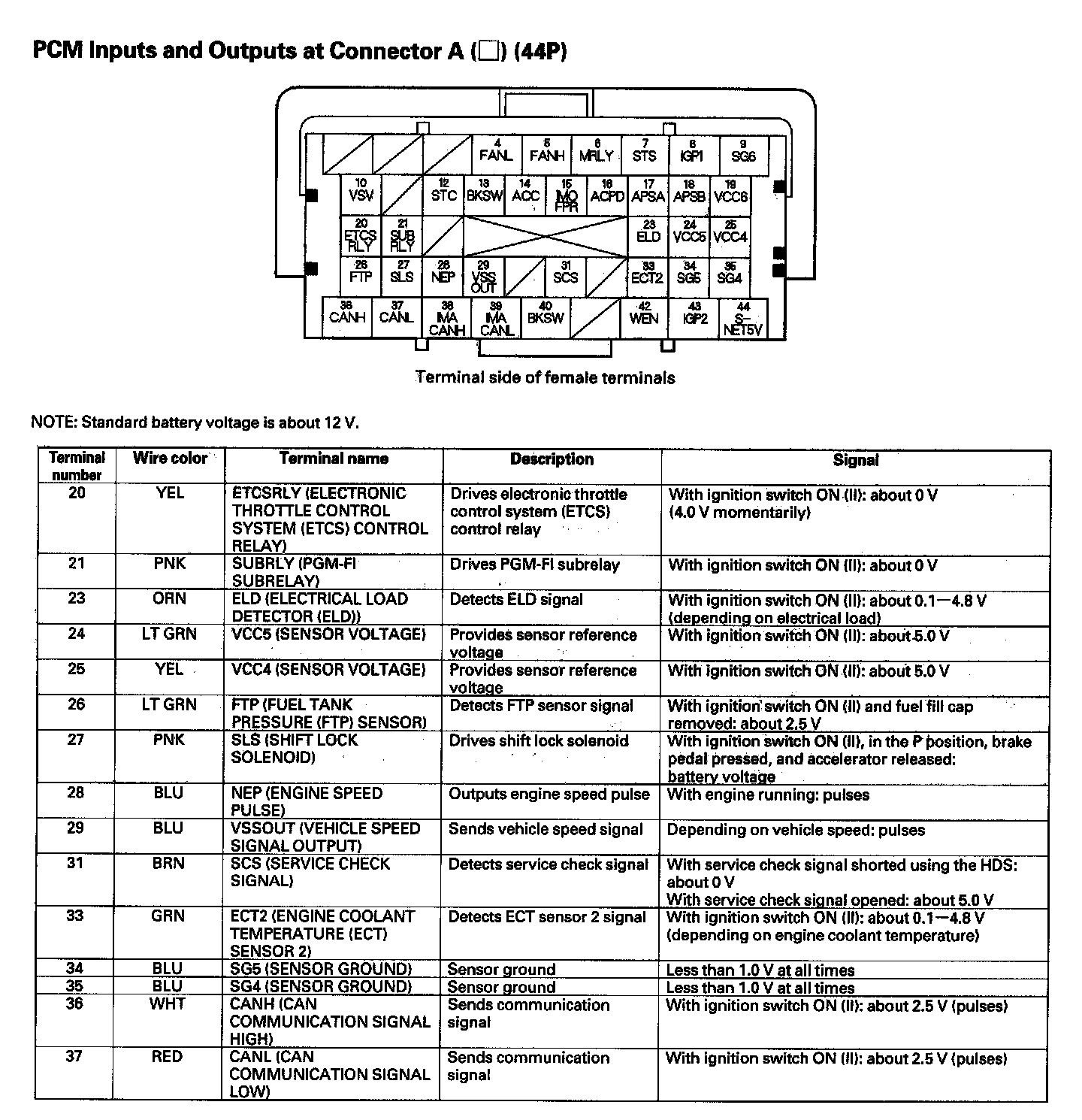 PCM Inputs And Outputs At Connector A (44P) Part 1: