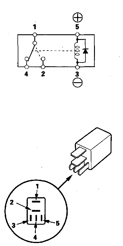 - There should be continuity between the No. 1 and No. 2 terminals when battery positive terminal is connected to the No. 5 terminal, and battery negative terminal is connected to the No. 3 terminal.