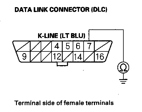 17. Check for continuity between DLC terminal No. 7 and body ground.