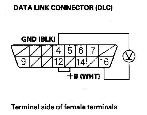 25. Measure voltage between DLC terminal No. 16 and body ground.