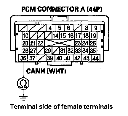 32. Check for continuity between PCM connector terminal A36 and body ground.