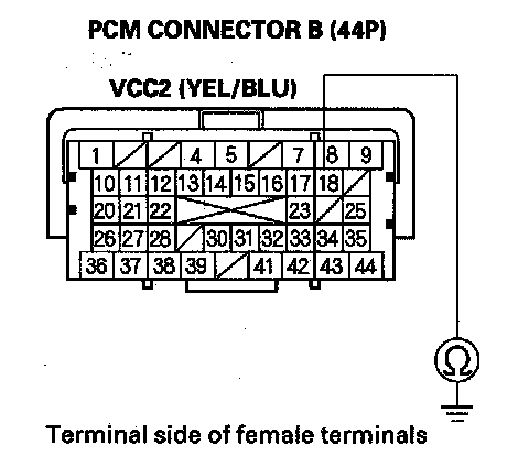 73. Check for continuity between PCM connector terminal B18 and body ground.