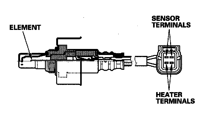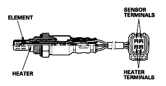 The secondary HO2S detects the oxygen content in the exhaust gas downstream of the three way catalytic converter (TWC), and sends signals to the PCM which varies the duration of fuel injection accordingly. To stabilize its output, the sensor has an internal heater. The PCM compares the HO2S output with the A/F sensor output to determine catalyst efficiency. The secondary HO2S is located on the TWC.
