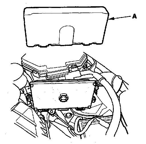 3. Lift up the under-hood fuse/relay box (D).