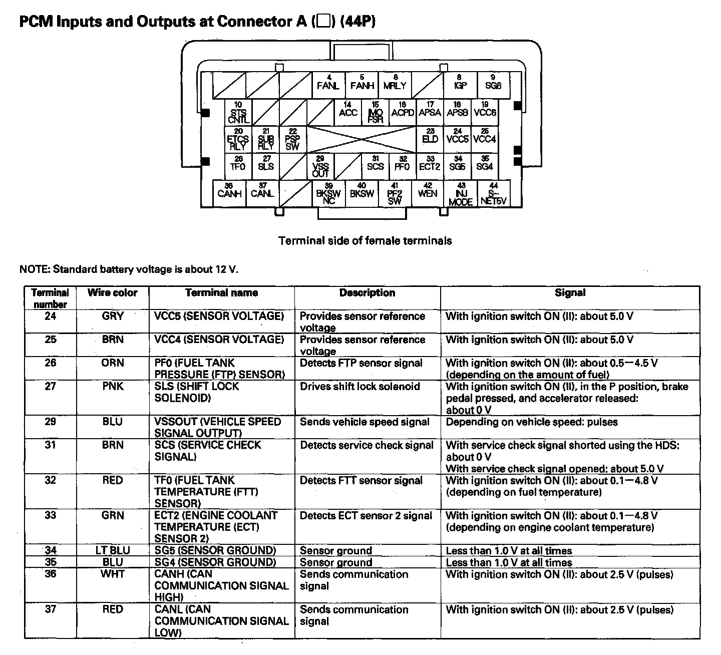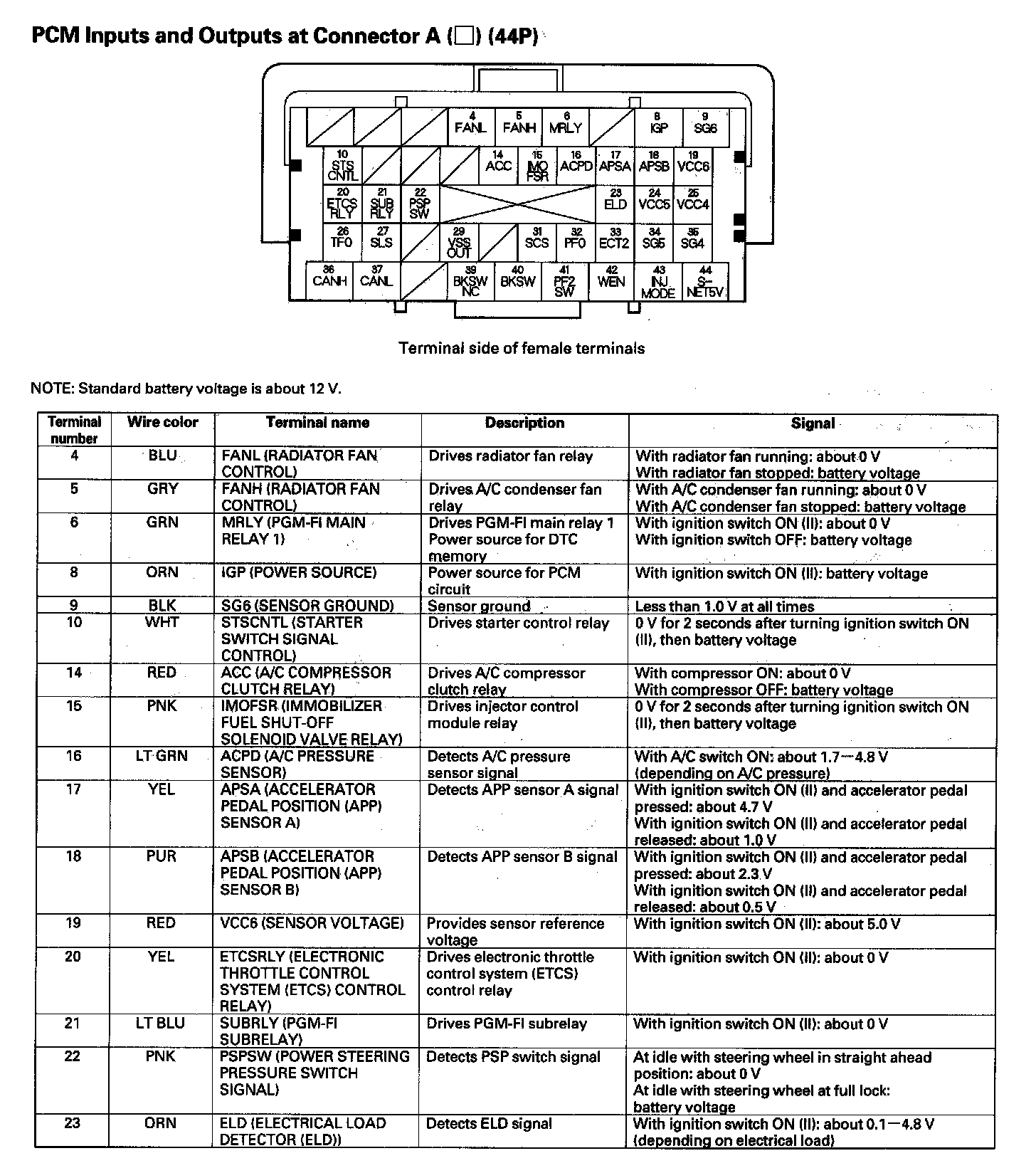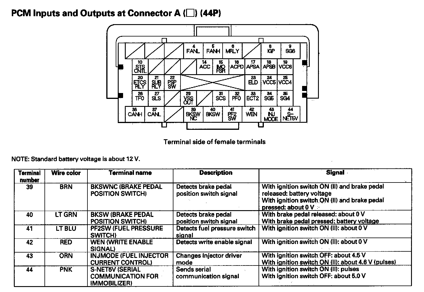 PCM Inputs And Outputs At Connector A (44P) (Part 2):
