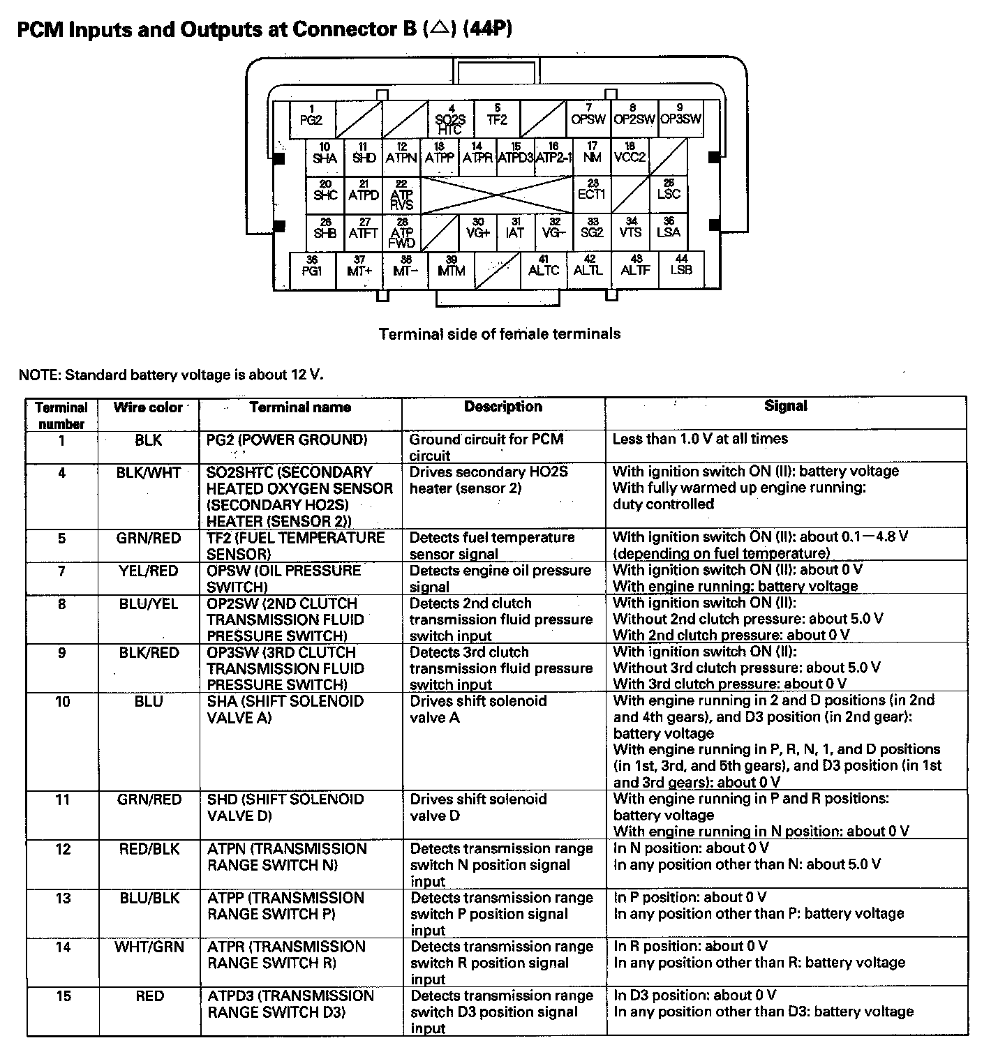 PCM Inputs And Outputs At Connector B (44P) (Part 2):
