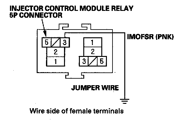 4. Connect injector control module relay 5P connector terminal No. 3 to body ground with a jumper wire.