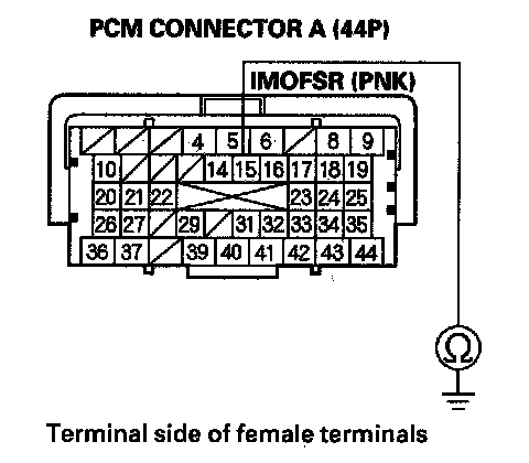 7. Check for continuity between body ground and PCM connector terminal A15.