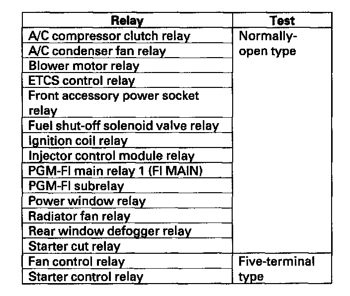 Use this chart to identify the type of relay, then do the test listed for it.