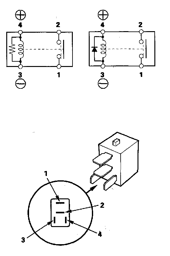 - There should be continuity between the No. 1 and No. 2 terminals when battery positive terminal is connected to the No. 4 terminal, and battery negative terminal is connected to the No. 3 terminal.