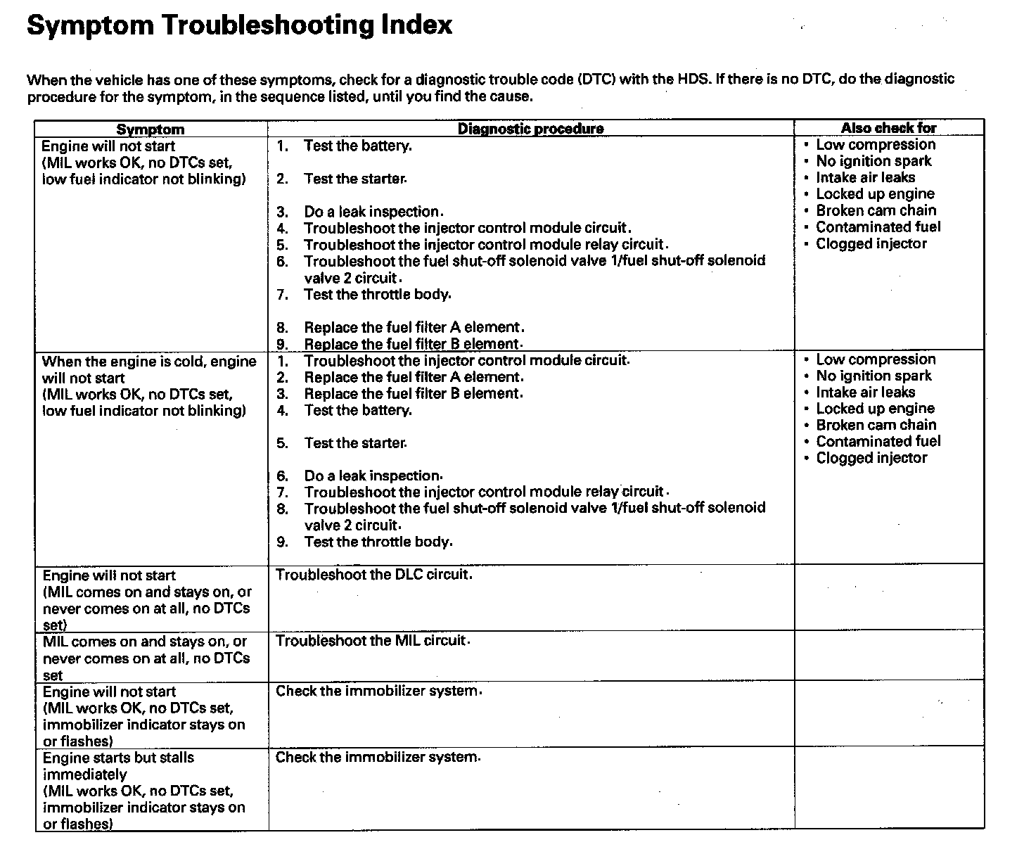 Symptom Troubleshooting Index (Part 1):