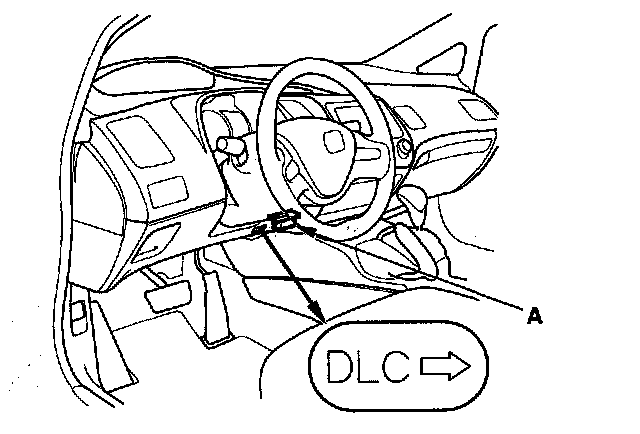 3. Connect the HDS to the DLC (A) located behind the driver's dashboard lower cover, and go to the A/T DATA LIST.